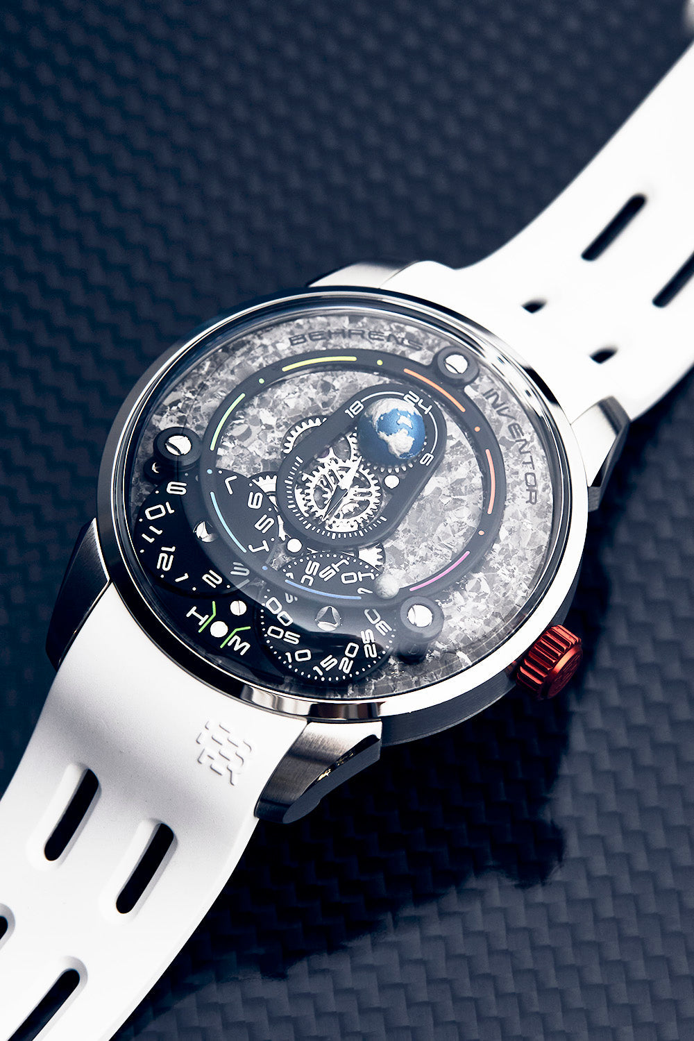 De Behrens Apolar Titanium Crystallized is een gelimiteerde oplage van 88 stuks en combineert precisietechniek met avant-gardistische esthetiek. Ontworpen voor liefhebbers van verfijnde horlogemakerij, maakt dit horloge gebruik van een kast van gekristalliseerd titanium, wat het een unieke en duurzame textuur geeft, terwijl het tegelijkertijd uitzonderlijk licht blijft.