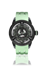 De driedimensionale wijzerplaat is voorzien van een roterende uren- en minutenweergave, waardoor de illusie van een ruimteschip in een baan om de aarde ontstaat. De kast, zorgvuldig vervaardigd om de robuustheid van interstellaire shuttles te imiteren, is gemaakt van roestvrij staal en heeft een diameter van 42 mm, wat zorgt voor een sterke aanwezigheid om de pols. Het gewelfde, antireflecterende saffierglas zorgt voor optimale helderheid en benadrukt de complexe details van de wijzerplaat.