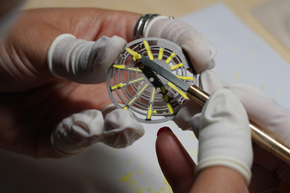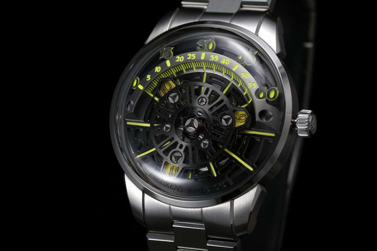 De satellietmodule van de B023 maakt gebruik van een systeem met 3 schijven dat rond de wijzerplaat draait, waardoor de meeste cijfers verborgen blijven en slechts 3 uursaanduidingen tegelijk zichtbaar zijn, als een geheime code die ontcijferd moet worden. De wijzerplaat, versierd met motieven geïnspireerd op "De Da Vinci Code", heeft ook een datumweergave om 2:30 uur, wat functionaliteit en elegantie toevoegt. Dit model wordt geleverd met een gepatenteerde metalen band, uitgerust met een drukknopsysteem voor eenvoudige aanpassing van de bandlengte zonder gereedschap.