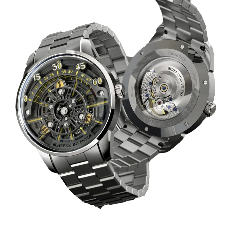 De Behrens Da Vinci Code B023 is een uniek mechanisch horloge, geïnspireerd op het mysterie van de beroemde "Da Vinci Code". Met zijn intrigerende ontwerp en innovatieve functies beschikt dit horloge over een satelliettijdweergave die een gecodeerd systeem nabootst, wat een horlogemakerijervaring biedt die even boeiend als mysterieus is. Uitgerust met een automatisch uurwerk van Zwitserse makelij, bevat het een in eigen huis ontwikkelde mechanische module voor een unieke, gecodeerde tijdweergave.