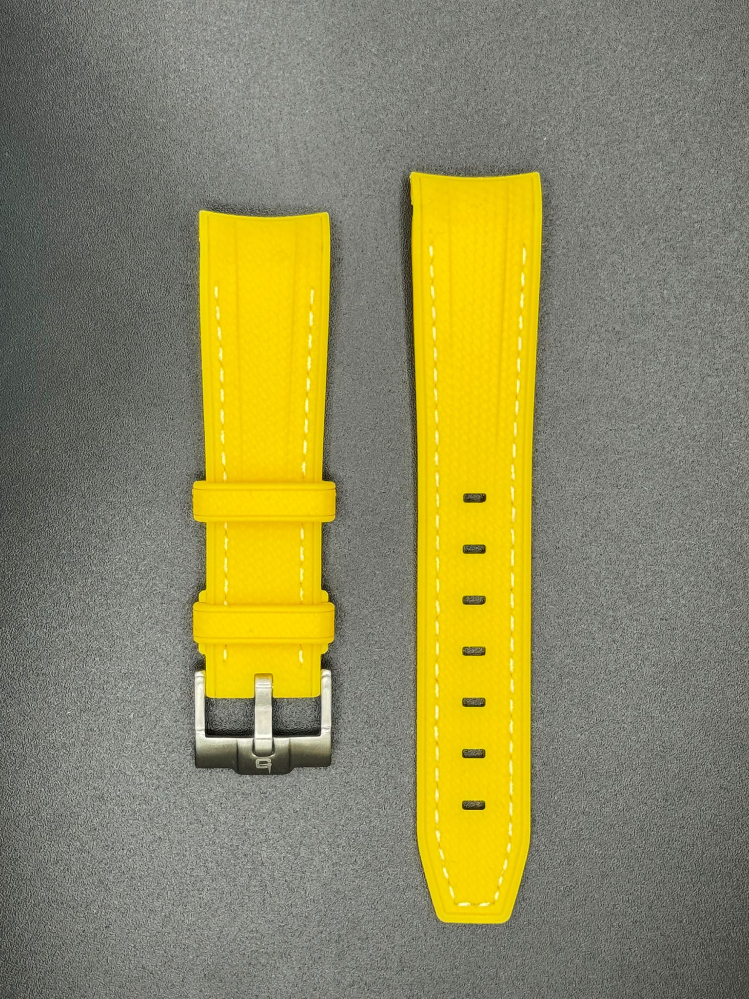 Gele rubberen band met witte stiksels voor MoonSwatch- en Omega-horloges