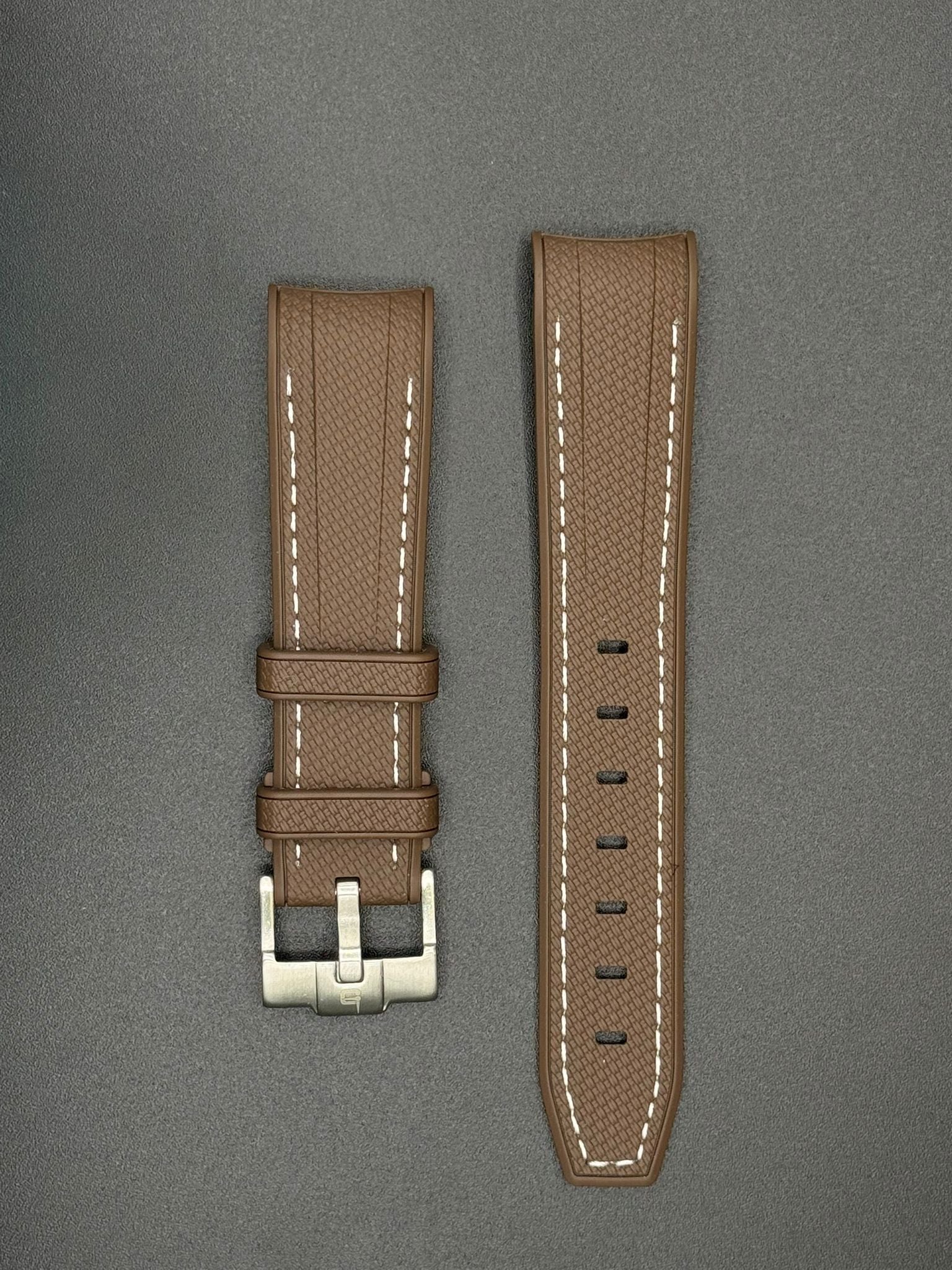 Bruine rubberen band met witte stiksels voor MoonSwatch- en Omega-horloges