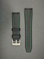 Zwarte rubberen band met groene stiksels voor MoonSwatch- en Omega-horloges