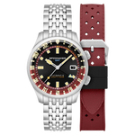 Armbanden: 20 mm roestvrij staal met veilige vouwsluiting - Extra rode rubberen band