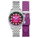 - Wijzerplaat : Paars met aangebrachte indexen en Zwitserse Newlite-luminescentie