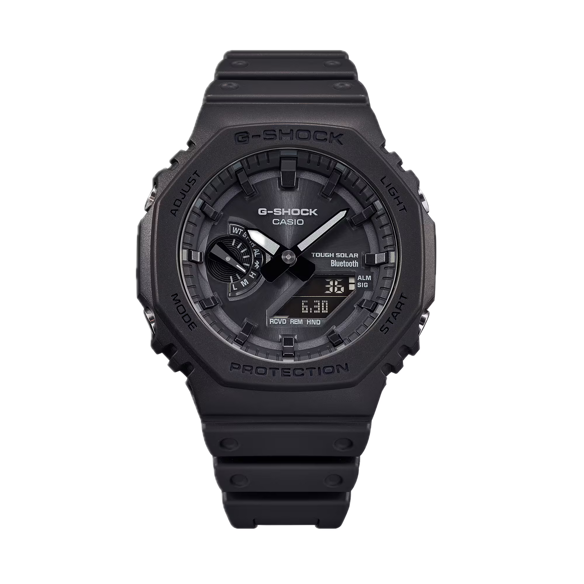 Herontdek de retrolook waar u zo van houdt met de GA-2100-serie met achthoekige kasten. Deze serie is gebaseerd op het concept van het allereerste G-SHOCK-horloge, maar dan in een versie met Smartphone Link en Tough Solar power (zonne-energie).
