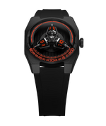 Armen van roestvrij staal 316L, geanodiseerde aluminium roterende uurschijf en wijzerplaat met Genève-patroon, Super-Luminova™ gecoate cijfers op de halfronde minutenbalk en roterende uurschijf
