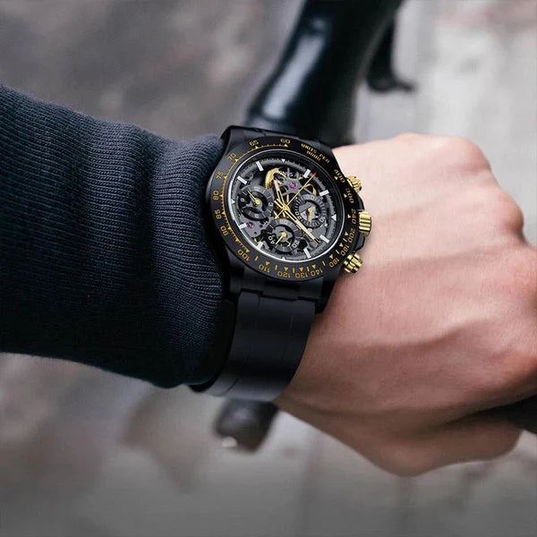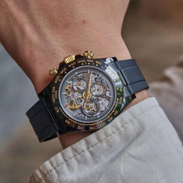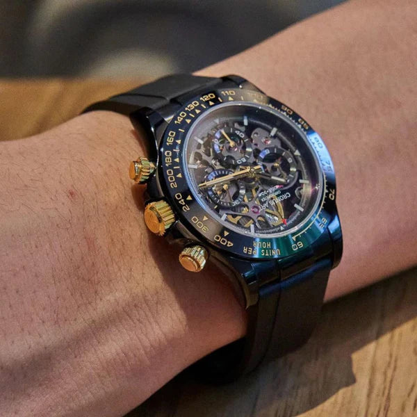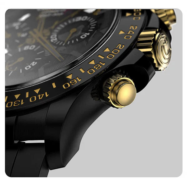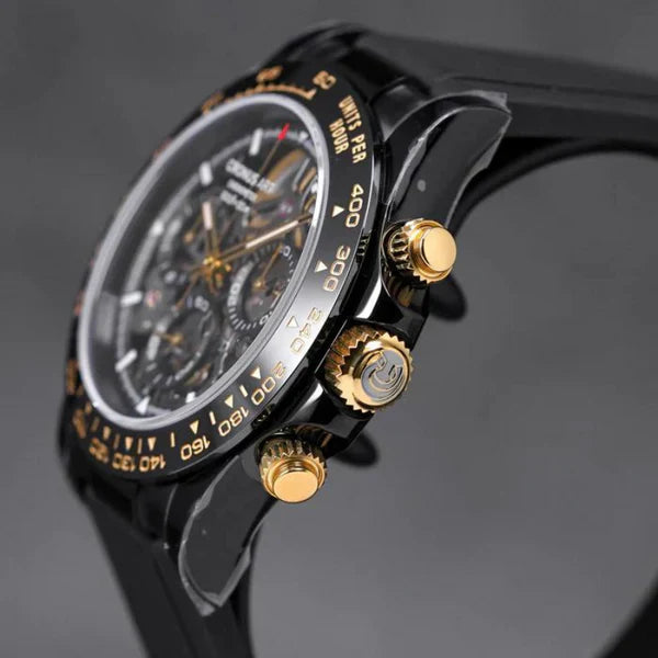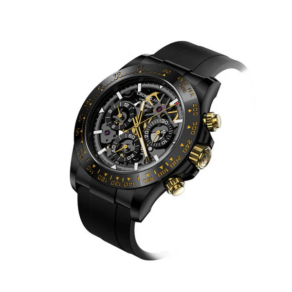 De CRONUS ART CM015-003 combineert klassieke en moderne designelementen tot een sportief en verfijnd horloge met geavanceerde kilometertellerfunctionaliteit, ideaal voor sport- en raceliefhebbers. Met een frame van 316L roestvrij staal is dit model een eerbetoon aan het designverleden van Rolex Daytona en voegt het een uniek vleugje innovatie toe.