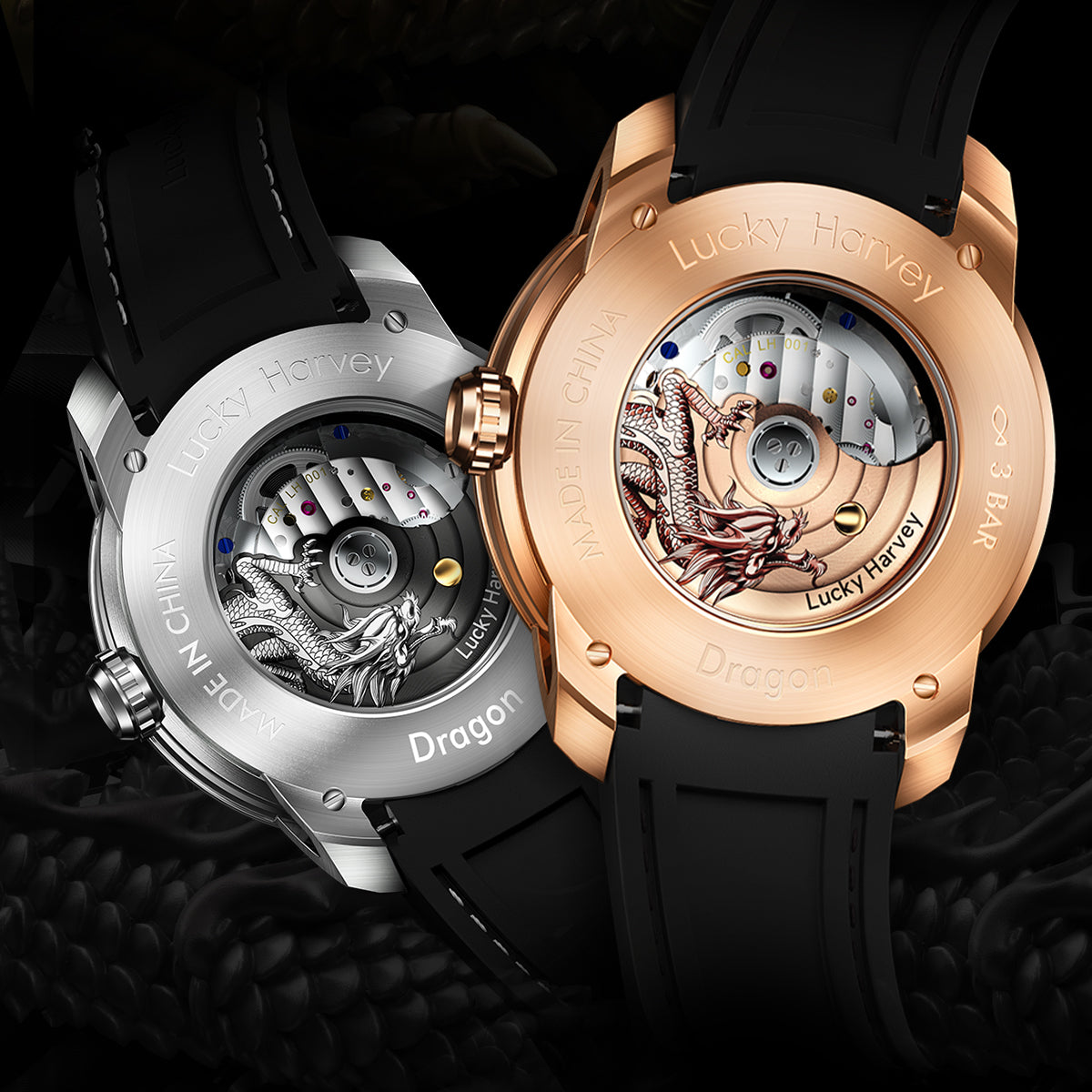 De Chinese draak rond de wijzerplaat is gedetailleerd gesneden en prachtig gekleurd, met een gouden kraal van 999 puur goud. Aan de opening onthult de gouden kraal zich langzaam en verdwijnt dan weer, wat de creativiteit en unieke culturele sfeer van China benadrukt.