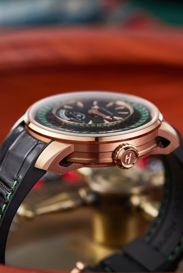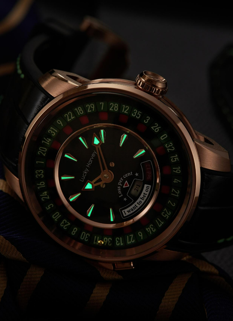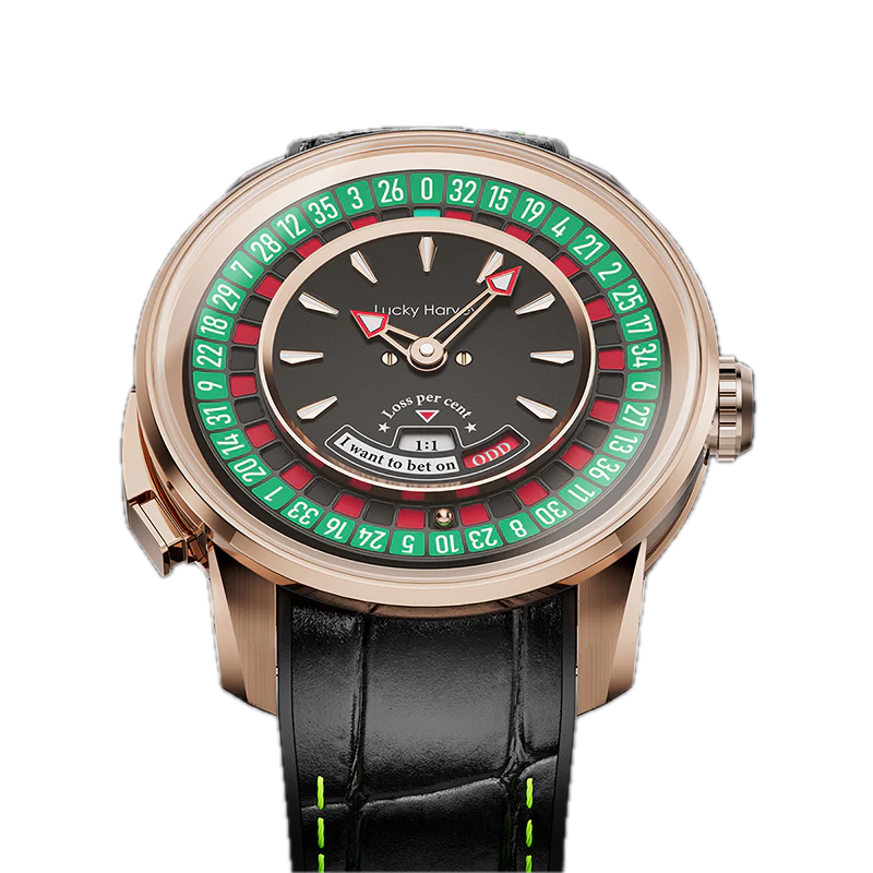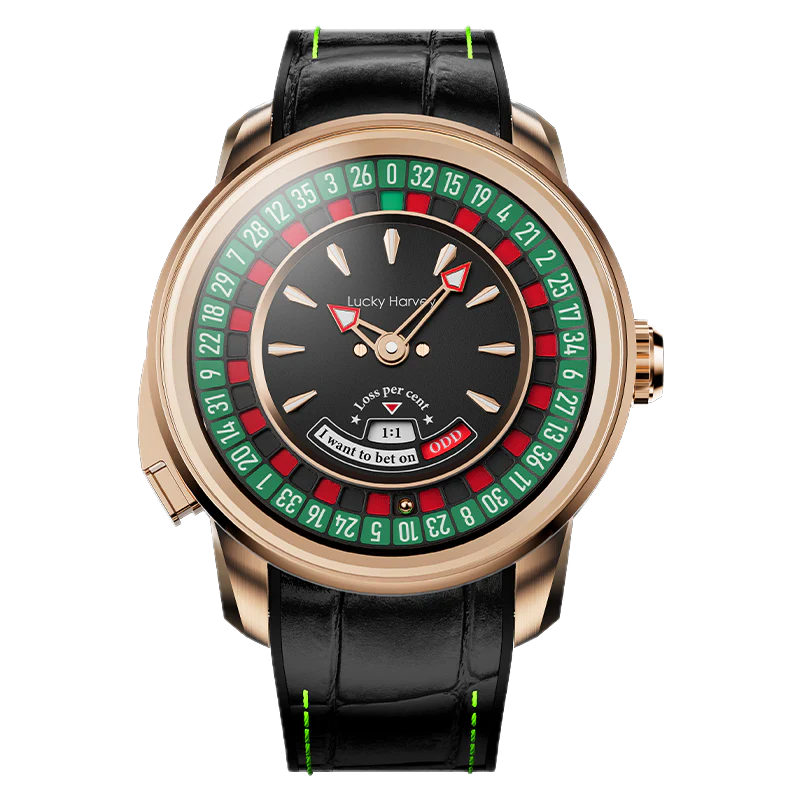 Dompel jezelf onder in de gedurfde elegantie van het Lucky Harvey European Roulette Rose Gold horloge. Geïnspireerd door de wereld van casino's, heeft dit unieke horloge een wijzerplaat versierd met een Europees roulettewiel. Functioneel en voegt een speelse en verfijnde touch toe. De PVD roségouden kast contrasteert weelderig met de kleurrijke details van de wijzerplaat, wat een betoverend visueel effect creëert. Met zijn automatische uurwerk garandeert dit horloge betrouwbaarheid en precisie. Perfect voor liefhebbers van origineel design en uitzonderlijke horlogemakerij, belichaamt de European Roulette Rose Gold de charme en glamour van de casinowereld.