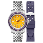 Deze vernieuwde versie van de Fleuss Automatic viert het 145-jarig jubileum van Henry Fleuss' baanbrekende gasrebreathertest en markeert een belangrijke mijlpaal met een verfijnde kast van 40 mm. Met zachte en subtiele vintage kleuren brengt dit horloge een eerbetoon aan het erfgoed van duikhorloges, met behoud van moderne esthetiek en horlogenormen.