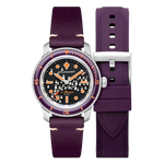 - Band : Rubber en paars runderleer, 20 mm breed met zilveren gesp