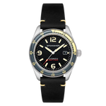 Deze editie met zwarte wijzerplaat en leren band geeft een vleugje karakter en authenticiteit aan een tijdloos design. Een perfecte keuze voor liefhebbers van horloges met een vintage stijl en prestaties.
