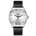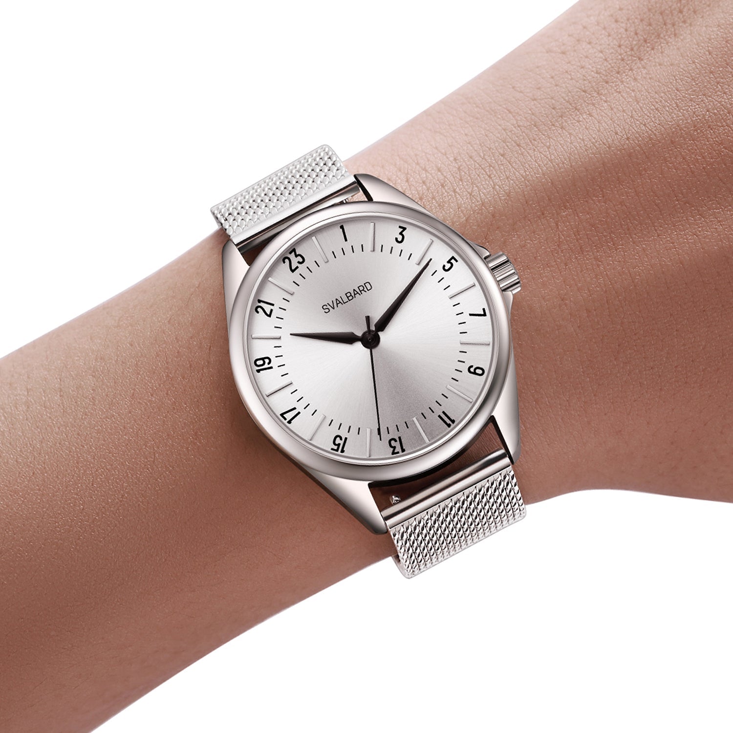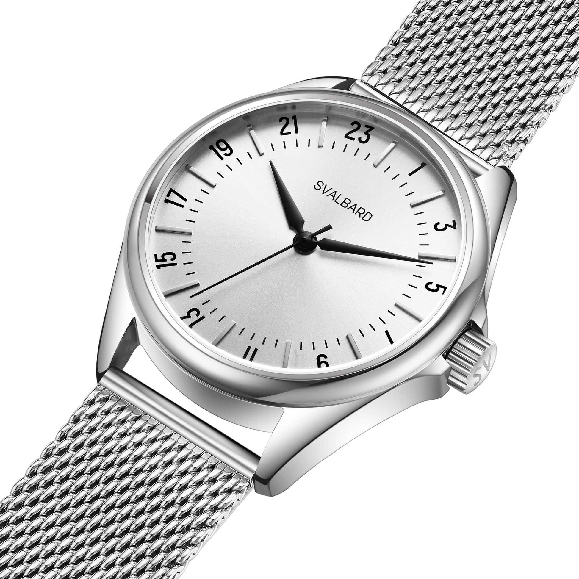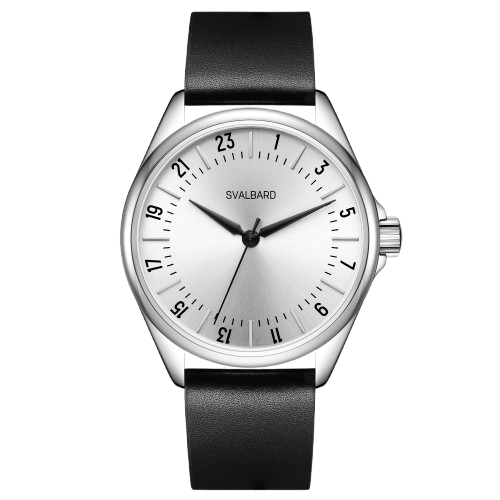 • Wijzerplaat : Mat zilver met zwarte cijfers en zilveren uurmarkeringen