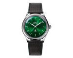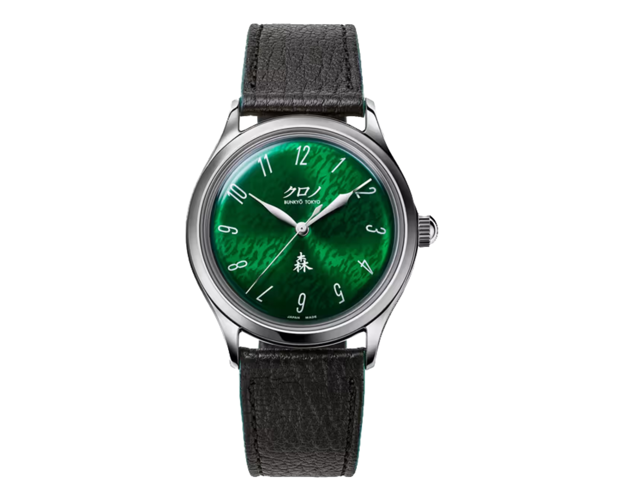 De Kurono Tokyo Anniversary Grand Mori is een limited edition horloge, ontworpen door meesterhorlogemaker Hajime Asaoka. De slanke stalen kast van 37 mm herbergt een weelderige groene wijzerplaat, vervaardigd van traditionele urushi-lak, met de hand aangebracht op een gouden basis. Geïnspireerd door licht dat door een baldakijn filtert, biedt de wijzerplaat diepe, veranderende reflecties. Aangedreven door een automatisch Miyota 90S5-uurwerk, biedt het een gangreserve van 40 uur. De Grand Mori, gepresenteerd op een zwarte leren band met groene stiksels, combineert Japans minimalisme, uitzonderlijk vakmanschap en moeiteloze verfijning.