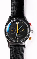 Lima Kronosprinter. Geïnspireerd door het strakke design van Bauhaus en de eigentijdse verfijning van Dieter Rams' stijl, combineert dit chronograafhorloge moderniteit en vintage. Met zijn unieke vierkante cirkel, de Squircle genaamd, is de Lima Kronosprinter onmiskenbaar een uniek horloge dat zich onderscheidt van de massa.