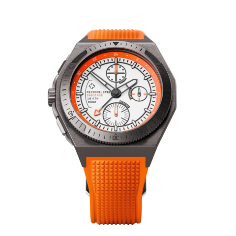 Oslo, 22 mei 2025 – MICROMILSPEC kondigt met trots de lancering aan van Project Sabotage, een nieuwe versie van de voor een prijs genomineerde MILGRAPH, gesaboteerd door niemand minder dan experimenteel kunstenaar Black Badger. Deze gelimiteerde editie combineert tactisch DNA met een radioactieve persoonlijkheid, dankzij de oranje Super-LumiNova X1 en een witte wijzerplaat, wat de MILGRAPH tot een waar verzamelobject maakt. Elk horloge wordt bovendien geleverd met een speciaal voor dit project ontworpen militaire plaquette in gelimiteerde oplage, met een witte en oranje Super-LumiNova X1, die de kleurcode van de wijzerplaat en het serienummer weerspiegelt.