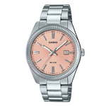 Door innovatie, functionaliteit en trend te combineren, blijft het onmiskenbare Japanse merk Casio de traditionele codes van de horlogemakerij omverwerpen door zijn eigen identiteit en onderscheidende DNA te introduceren. Sinds de lancering van zijn eerste digitale horloge in 1974 heeft het merk wereldwijd volgers weten te verwerven door praktische, moderne en duurzame uurwerken aan te bieden die geschikt zijn voor alle gelegenheden en wensen. Vandaag bieden wij u dit prachtige MTP-1302PE-4AVEF horloge aan, onderdeel van de Heritage-serie en bedoeld voor dagelijks gebruik. De perfecte combinatie van functionaliteit, veelzijdigheid en duurzaamheid voegt een vleugje tijdloze elegantie toe aan uw look, zowel overdag als 's nachts, en staat u bij met grote betrouwbaarheid tijdens al uw avonturen. De zilverkleurige kast is gemaakt van messing en heeft een delicate ronde vorm met een diameter van 38,50 mm . 9,20 mm dik en 44,20 mm lang . Met deze perfecte afmetingen is het geschikt voor zowel mannelijke als vrouwelijke polsen en garandeert het absoluut draagcomfort. Met een gewicht van 105 g is het versierd met een gepolijste/geborstelde afwerking die de finesse benadrukt en het een subtiel modern tintje geeft. De kast herbergt een kroon met een gekerfd ontwerp op 3 uur waarmee u de wijzers en het venster naar wens kunt bedienen. Een gecanneleerde lunette omringt het minerale glas dat de wijzerplaat bedekt, wat het geheel een elegante en verfijnde noot geeft. Aan de achterkant is een geneste achterkant zichtbaar , die een waterdichtheid van 5 ATM garandeert .