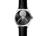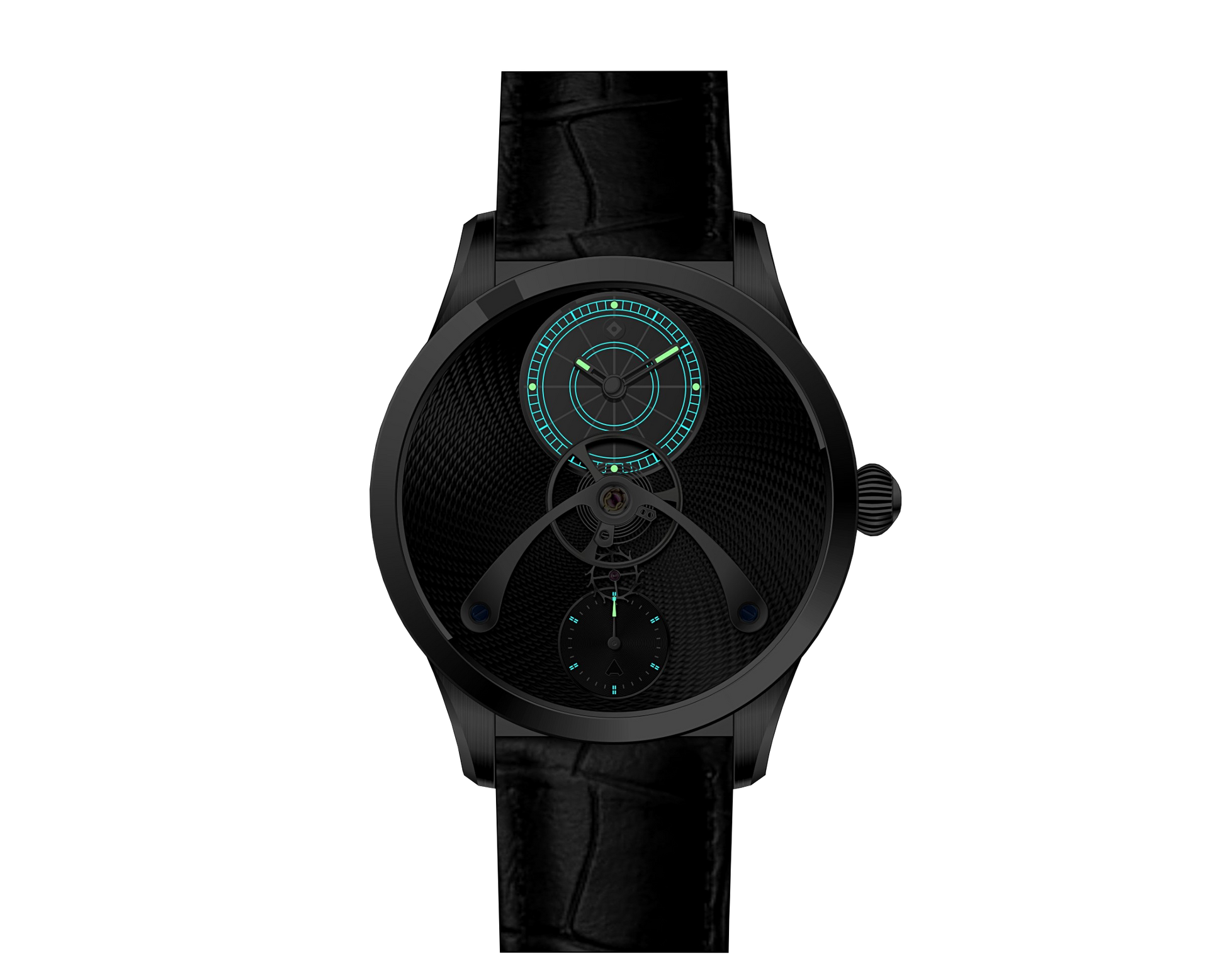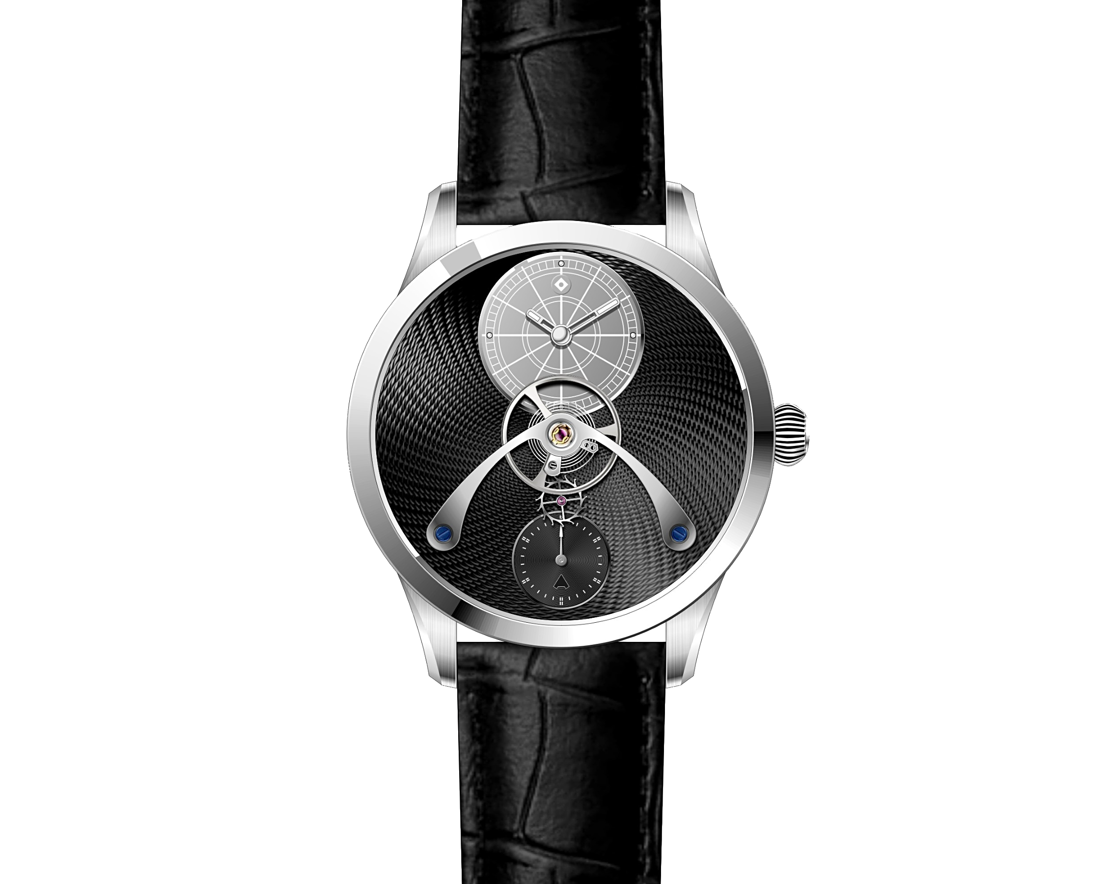 De gepolijste stalen boog die het zichtbare balanswiel en de sub-tellers ondersteunt “sector wijzerplaat” , ‘zonnestraal’ staal op 12 uur en zwarte ‘radiaal’ op 6 uur, “ontwerpt” een “ruimtelijk horologisch” verkenningsschip: de “Ster Nero”. Dankzij deze wijzerplaatarchitectuur doorbreekt het de duisternis van de ruimte, wat op sublieme wijze wordt gesuggereerd door de diepzwarte wijzerplaatachtergrond, die in een helixvorm is geguillocheerd en het licht op magnifieke wijze weerkaatst.