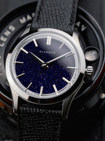 De Quantra Type 02 heeft een betoverende aventurijn wijzerplaat, bekend om zijn subtiele schittering die een sterrenhemel nabootst. Elk horloge combineert vakmanschap en natuur, met een gepolijst oppervlak dat het licht prachtig reflecteert. Speciaal gepolijste opgelegde indexen en gefacetteerde wijzers (zonder secondewijzer voor een duidelijk zicht op de wijzerplaat) versterken het ontwerp en zorgen voor een strakke en elegante esthetiek.