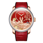 Het Rabbit Red horloge van Lucky Harvey viert het Jaar van het Konijn met tijdloze elegantie. Deze gelimiteerde editie, geproduceerd in slechts 388 exemplaren, is een eerbetoon aan de symboliek van het konijn in China, geassocieerd met geluk en voorspoed. De fijn gedetailleerde wijzerplaat is voorzien van een zilveren konijnmotief, terwijl de robuuste roestvrijstalen kast en het automatische uurwerk betrouwbaarheid en precisie bieden. Uitgerust met een lichtgevende functie valt het horloge zelfs in het donker op en biedt het een elegante gloed. Dit zeldzame exemplaar is een must-have voor verzamelaars en liefhebbers van verfijnde horlogemakerij.