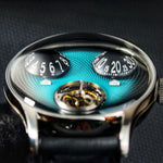 Nog unieker is dat het uurwerk een aangepaste, volledig geüpgradede Miyota 8215 is met nieuwe platen en een nieuwe rotor. Een intern ontwerp, verbeterd door de community. Het uurwerk is nu voorzien van tourbillon- en regulatormodules.
