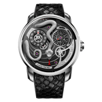 Het Snake Silver horloge van Lucky Harvey is een intrigerende creatie die de kunst van het horlogemaken combineert met elementen geïnspireerd door de wildernis. De opvallende wijzerplaat, versierd met een fijn gedetailleerd slangensculptuur, roept kracht en mysterie op. Dit model is uitgerust met een nauwkeurig automatisch uurwerk dat technologie combineert met een gedurfde esthetiek. De zilverkleurige roestvrijstalen kast garandeert een voorbeeldige duurzaamheid, terwijl het resistente saffierglas dit meesterwerk beschermt. Voor liefhebbers van unieke en gedurfde horloges is de Snake Silver een opvallende keuze. De slang is een automaat die zijn tong uitsteekt en opbergt naarmate het uur verstrijkt, om hem vervolgens weer uit te rekken wanneer het volgende uur is bereikt.