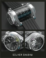 Zwarte wijzerplaten met rode geanodiseerde aluminium wijzers op de cilindrische wijzerplaat met witte BGW9 lichtgevende markering op het uiteinde.