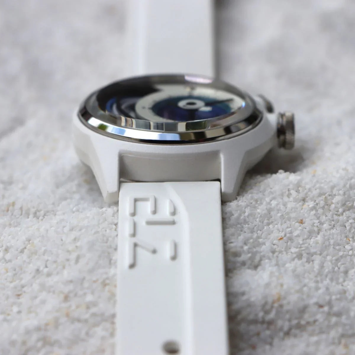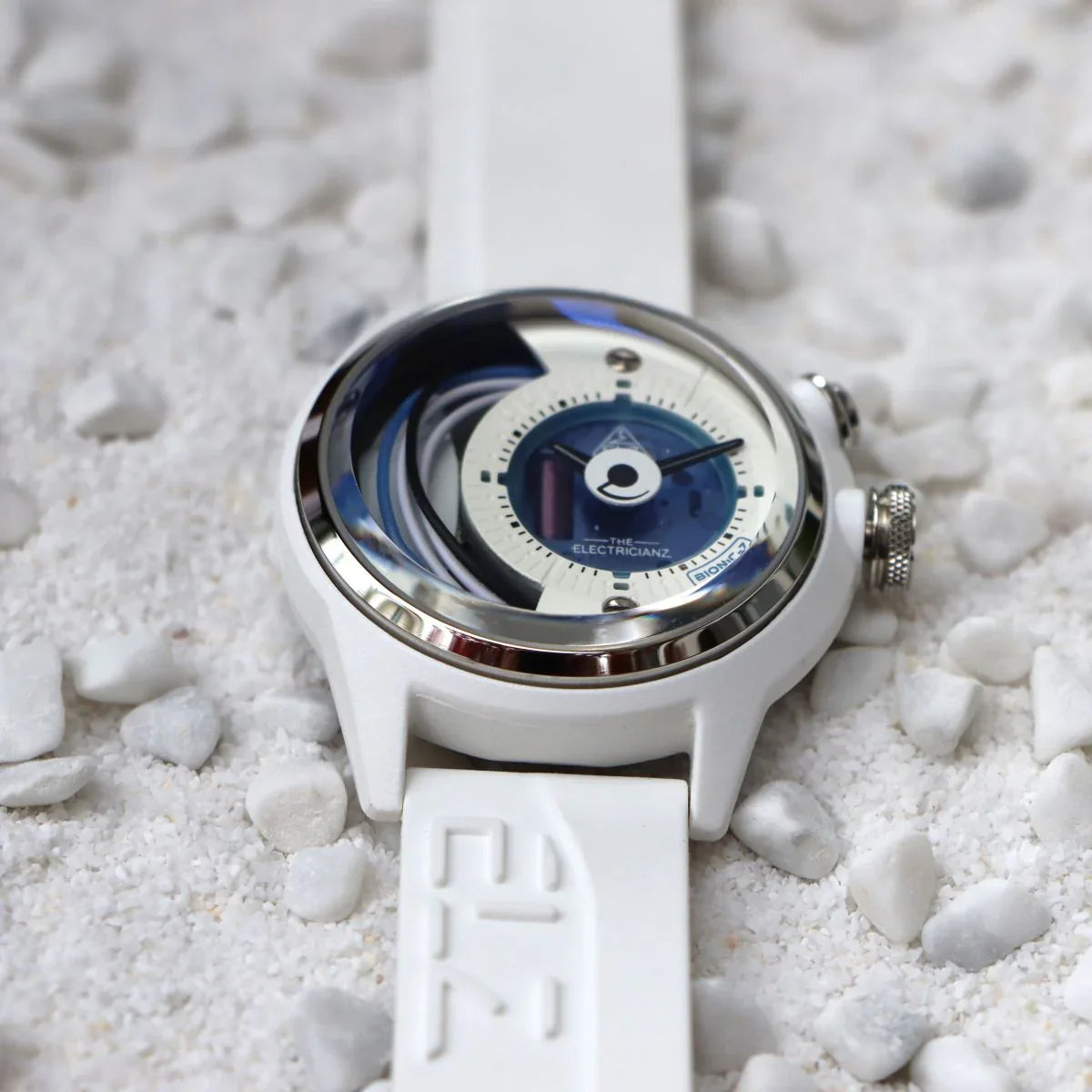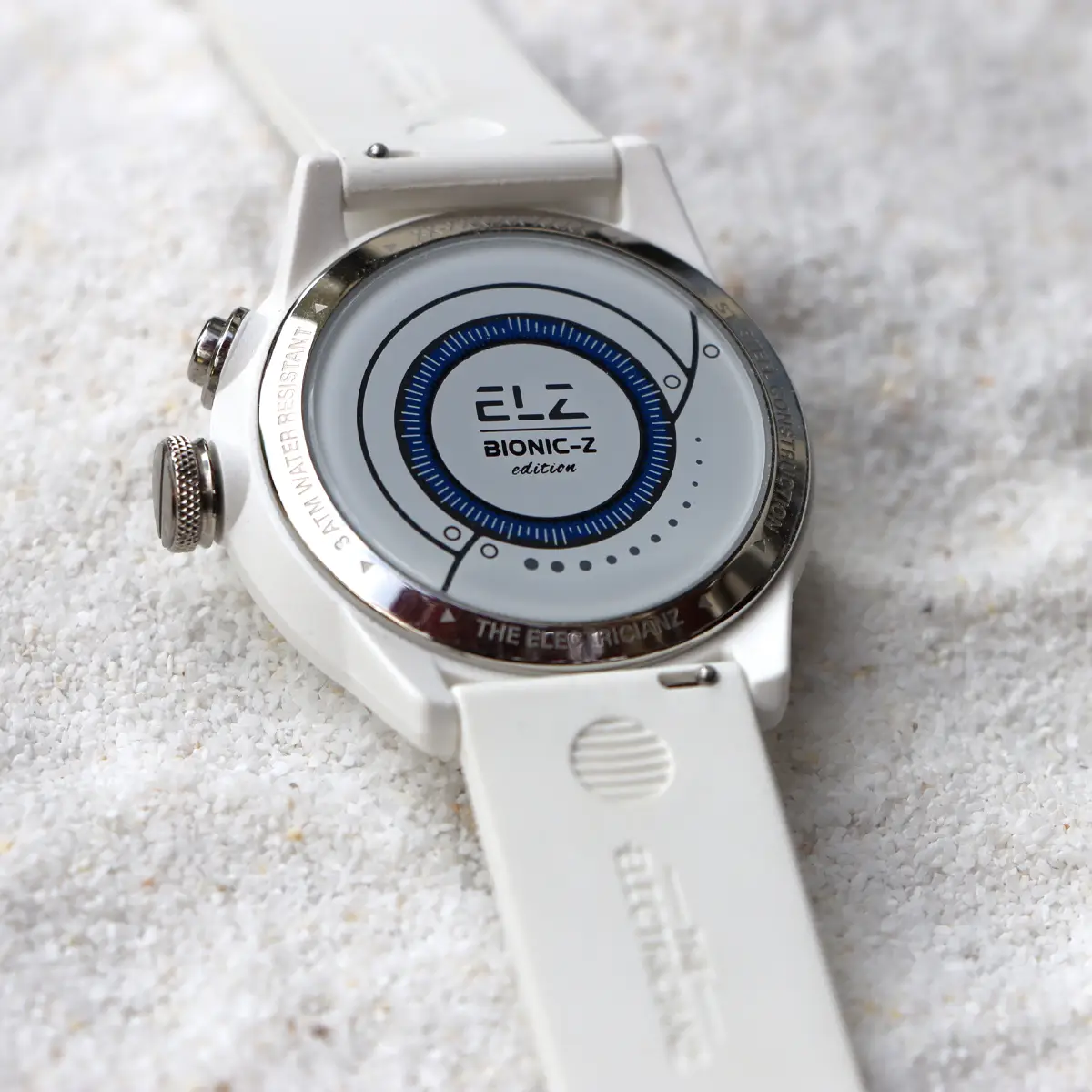 De Bionic Z Edition is met precisie en elegantie vervaardigd en heeft een slanke roestvrijstalen kast van 42 mm, versterkt door een verfijnde witte matte keramische buitenkant, geïnjecteerd in een robuuste nylon kast. Dankzij de robuuste constructie is dit horloge bestand tegen slijtage en spanningsscheuren, en de paraffine-achtige structuur zorgt voor een zijdezacht gevoel.