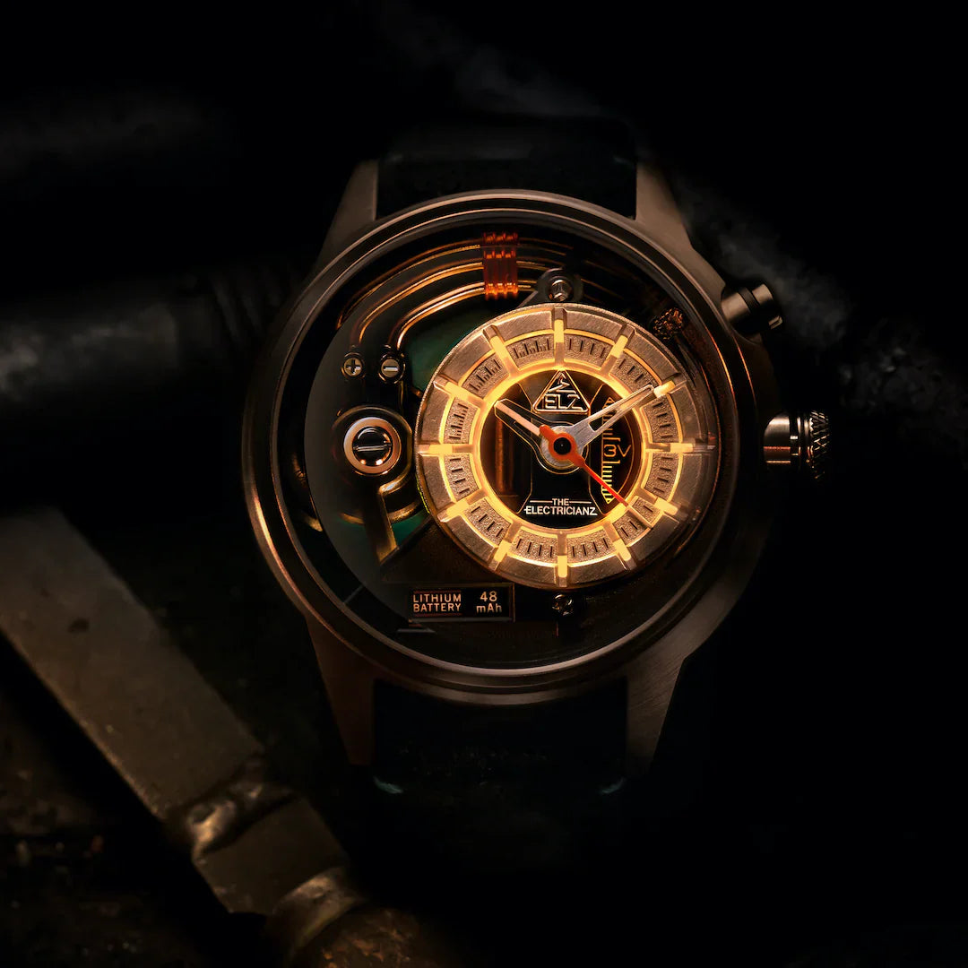 Licht is opgevat als een integraal onderdeel van het ontwerp: zo verlichten 5 LED's de uurring, waardoor deze 's nachts een spectaculair uiterlijk krijgt.