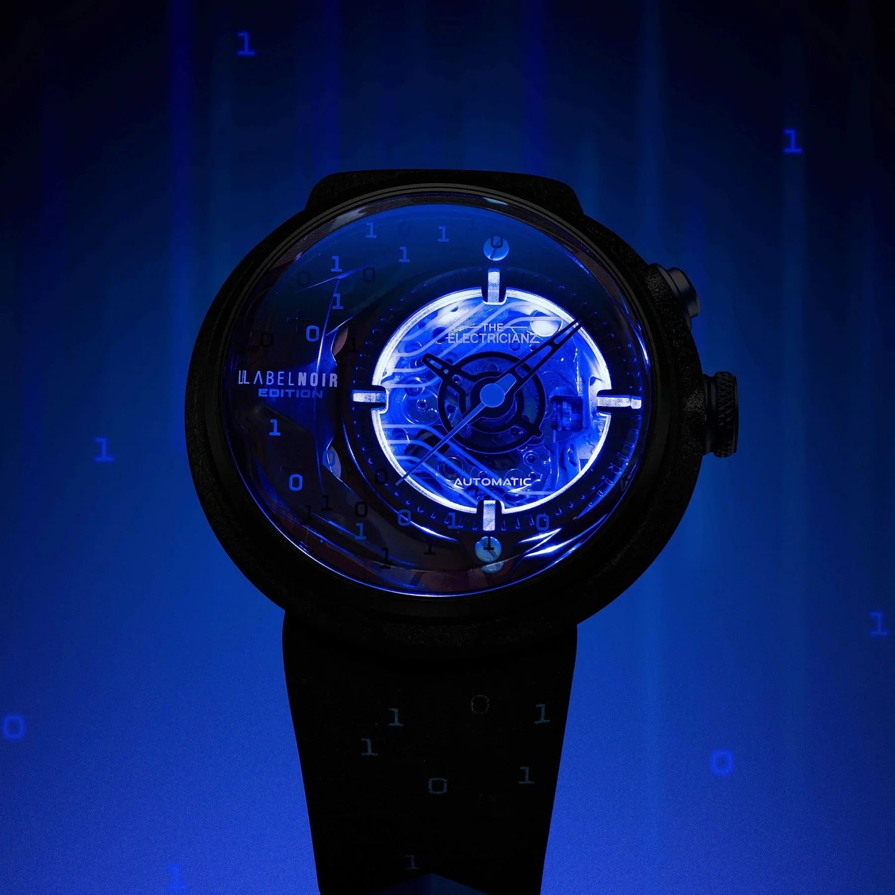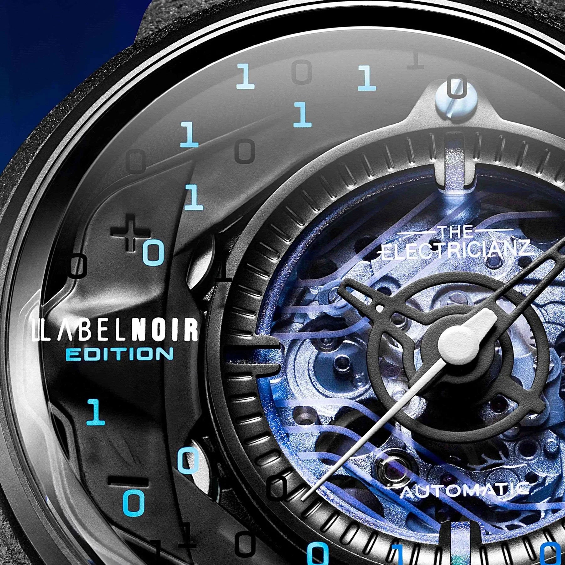De Label Noir Edition beschikt over een automatisch mechanisch uurwerk in combinatie met onze gepatenteerde module met 5 blauwe LED's van de nieuwe generatie, die zorgen voor een verbluffende nachtweergave.