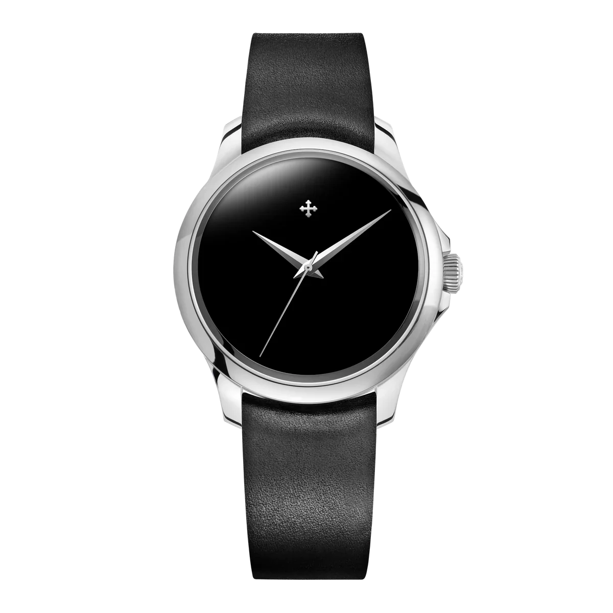 Dit horloge combineert minimalisme en elegantie in een tijdloos design. De volledig zwarte wijzerplaat is het resultaat van het gebruik van de exclusieve Japanse Musou Black™-verf, die 99,4% van het licht absorbeert en een onvergetelijke visuele ervaring biedt.