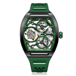Het ZEROO T4-01 horloge valt op door zijn gedurfde design en precisiemechaniek. Het heeft een volledig skeletachtige wijzerplaat die een gedetailleerd zicht biedt op het binnenwerk. De tourbillon, een centraal element, zorgt voor extra precisie door de zwaartekracht tegen te gaan. De esthetiek is modern en combineert horlogemakerstraditie met innovatie. Ideaal voor liefhebbers van geavanceerde mechanische horloges, want het combineert functionaliteit en stijl.