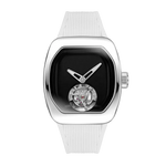 Het Zerootime T9 UFO horloge is een gedurfd, avant-gardistisch horloge dat futuristisch design combineert met vakmanschap. Het skeletachtige uurwerk onthult complexe mechanica en biedt een fascinerend kijkje in de precisie van de techniek. Geïnspireerd door technologie en eigentijds design, heeft dit horloge een unieke tonneau-vormige kast die doet denken aan de esthetiek van futuristische vliegende objecten. Vervaardigd met hoogwaardige materialen, garandeert de T9-01 robuustheid en comfort om de pols. Dit model is ideaal voor liefhebbers van moderne maar originele horloges die op zoek zijn naar een onderscheidende en gedurfde stijl.